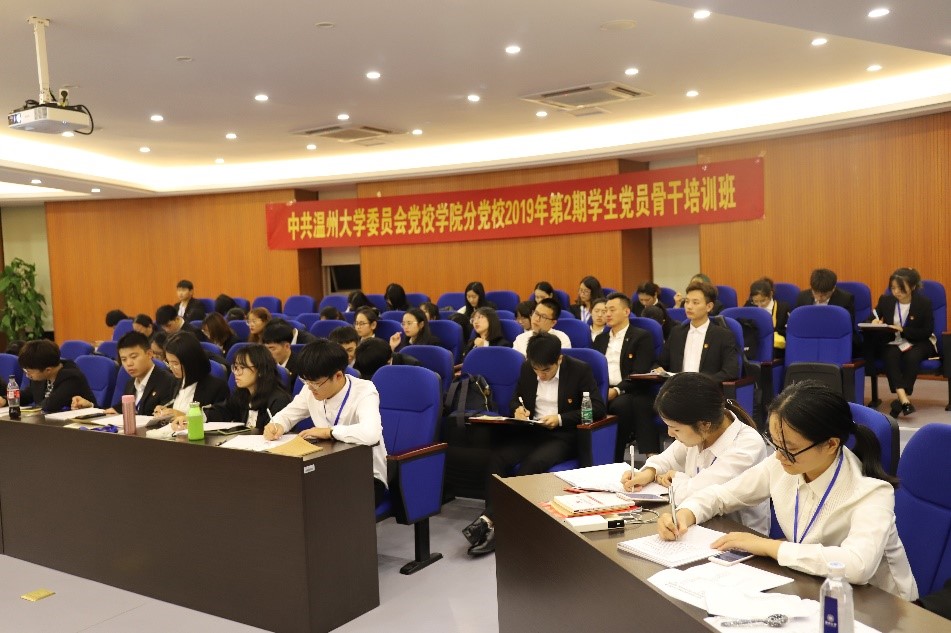 为认真学习贯彻党的十九大精神,深入贯彻党中央加强基层党建、全面从严治党的战略部署要求,结合“不忘初心 牢记使命”主题教育,进一步提高学生党员骨干的综合素养,加强学生党员骨干的各项能力,2019年10月23日下午13:30,中共温州大学委员会党校学院分党校2019年第2期学生党员骨干联合培训班(教育学院、数理学院、化材学院、生环学院、机电学院、电气电子学院、计算机学院、建工学院、美术学院等学院分党校)开班仪式于机电楼3B-309举行。出席本次开班仪式的老师有计算机与人工智能学院分党校校长全力,化学与材料工程学院分党校校长熊林、机电工程学院分党校校长周荣以及九个学院党建负责老师。本次开班仪式由计算机与人工智能学院学工办主任叶洁琼老师主持,学生党员骨干共计58人参加培训。