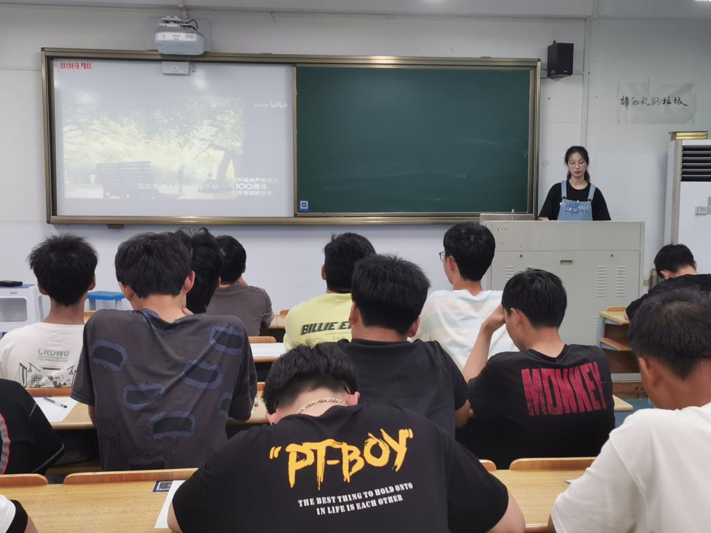 接着,韩晨同学围绕“寻求救国救民之路”,“唤起民众思想觉醒”,“实现中国共产党建党”这三方面,通过文字介绍与原剧片段相互穿插的方式,为同学们展示了那个年代丰富多彩的时代人物群像,让同学们感受到了李大钊等中国共产党革命先驱的崇高理想和卓越贡献。通过陈独秀、毛泽东、周恩来等众多历史人物为中国寻找出路的种种探索和思想交锋,以及思想文化界的一系列重大事件,让同学们深刻了解了中国共产党成立的宏大背景、历史卷轴,同时向同学们揭示了中国共产党成立的历史必然性。