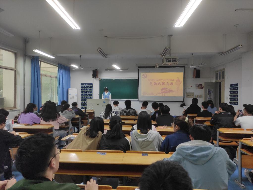 为贯彻习近平总书记关于学习党史的重要指示精神,提醒同学们坚定自己的党性修养,牢记自己的初心和使命。2021年4月28日下午15:45,计算机与人工智能学院本科生第二党支部于5A102教室开展了以“党的光辉历程”为主题的学习会。本次学习会由王岩同学主讲,来自支部的党员和积极分子共40余位同学参与了此次会议。