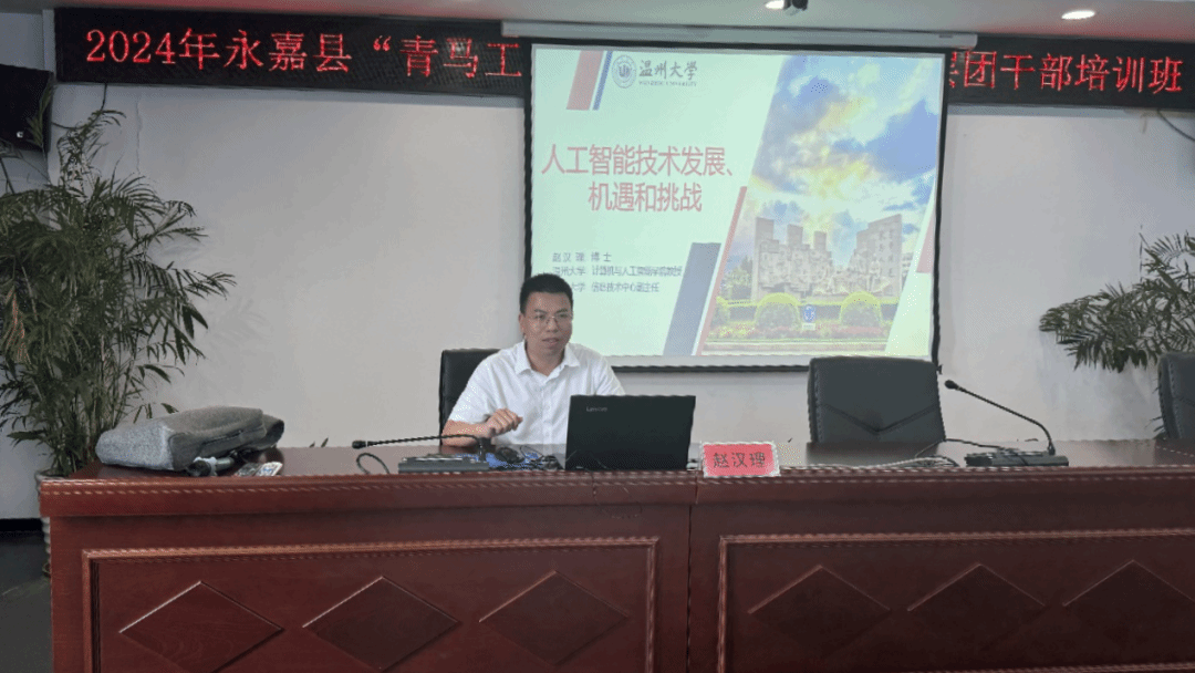 6月21日,民革温州大学基层委副主委赵汉理教授应邀为2024年永嘉县“青马工程”暨“浙里青廉”基层团干部培训班学员讲授人工智能课程。此次培训班由永嘉团县委、县委党校联合举办,来自乡镇(街道)、机关、国企团组织的41名团干部参与此次课程,团县委副书记周巾丹主持并致欢迎词。授课中,赵汉理首先介绍了人工智能技术的发展历程,AI技术正在不断演进,从传统的机器学习到深度学习和自然语言处理等前沿领域的突破,ChatGPT、Sora等AI大模型的涌现更是为各行各业带来了新的发展机遇。...